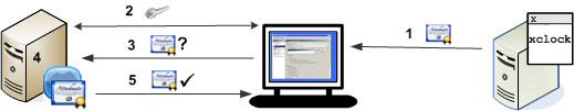 証明書が有効であり、ホストがこの証明書で識別可能な場合、Reflection X Advantage はホストのデジタル署名を検証します。デジタル署名が確認されると、ホスト認証は正常に終了します。