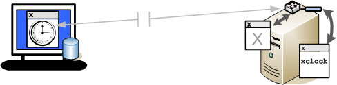 NOTE:In high latency networks, this configuration improves performance by short circuiting some of the data exchange over the network. With the headless X server running on the client host, client/server exchanges that don't affect the display pass between the client and the headless X server, but aren't sent on to the X server display on the workstation. This reduces the number of round trip network messages, which can improve the response time you see on your workstation. In addition, you can choose to compress the protocol between the protocol router and the X server display. (The default setting specifies to compress the protocol.)