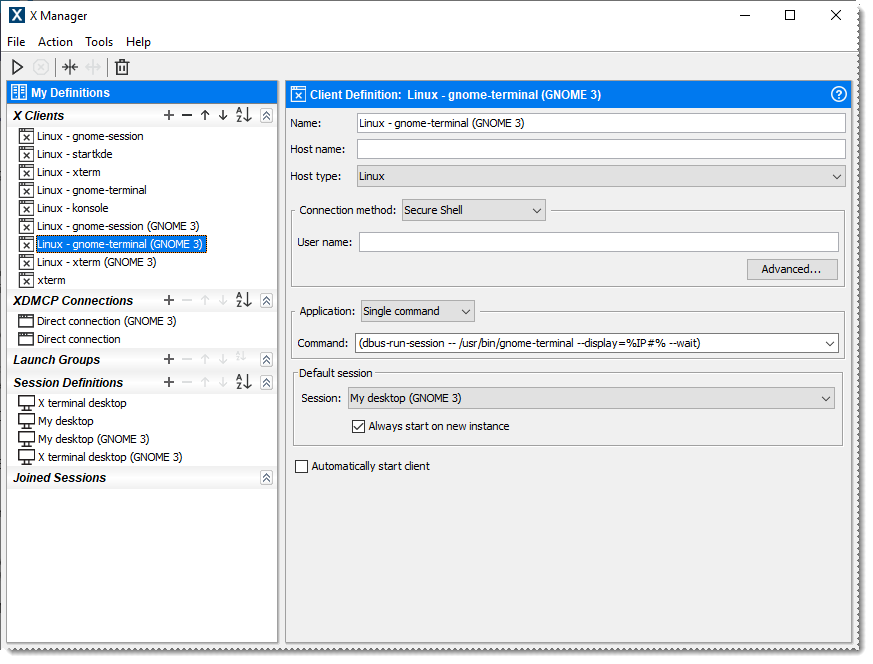 The quickest way to get connected to an X client is to use the standalone X Manager. This is an easy-to-use tool for configuring and starting X sessions.