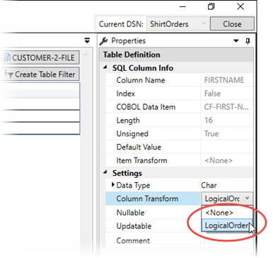 A transform is used to 'transform' (or convert) an existing data item value to and/or from a relational database column value. Transforms can be applied to the data item in the FD or at the column level (as described here).