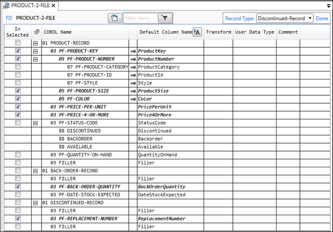 In the example, PF-BACK-ORDER-QUANTITY and PF-REPLACEMENT-NUMBER overlap: