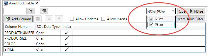 This is only an issue if multiple record types are assigned to the same table. In this example, the table is defined on the record types: NSize, and PSize.