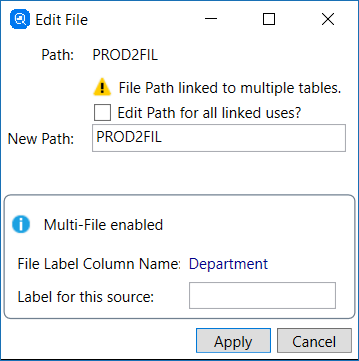 - If the table instance uses multiple files, you can change the label for this data file: in the Label for this source field,