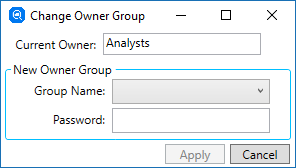 The Change Owner Group dialog box is displayed, and shows the current owning group.