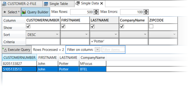 You can further narrow down the results by limiting the amount of rows displayed (Max Rows), or stop displaying results if a certain number of data errors are retrieved (Max Errors).