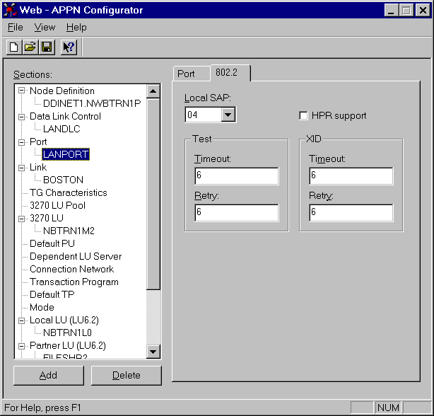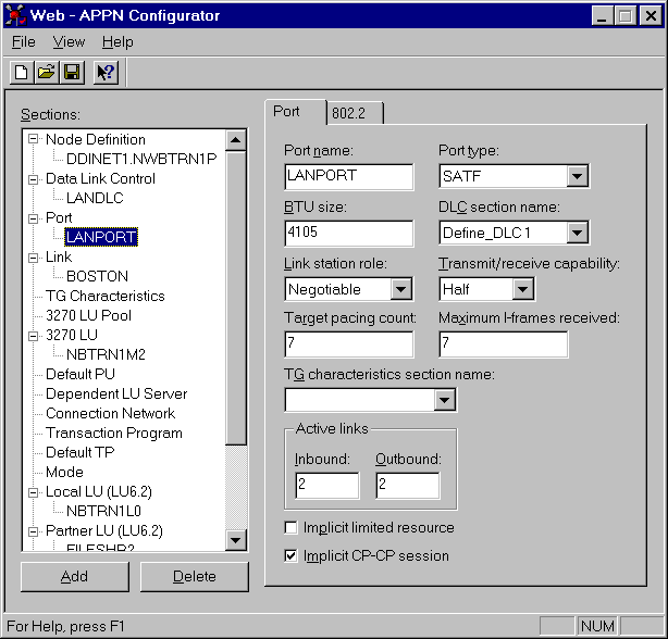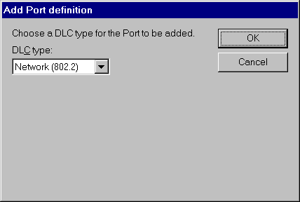 Add Port definition dialog box will appear. Select DLC type Network (802.2) and