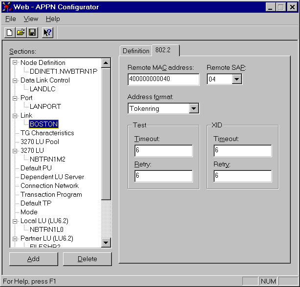 Network (802.2) and press OK. The 802.2 definition template will then be