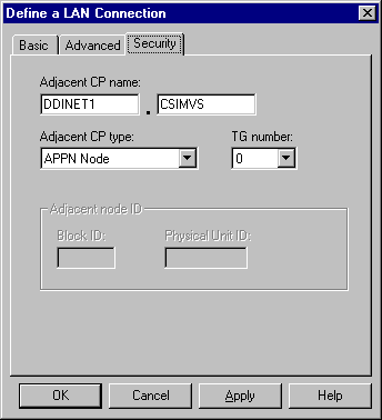Enter the Network Name for this SNA network in the first box. This should be obtained from the network administrator of the host system. In the second box following the period enter the name of the APPL on the remote Host machine. This should be obtained from the network administrator of the host system.