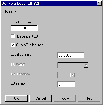 Before attempting to communicate using CCIAPPC you must define the local and remote LUs which will be used to communicate over the SNA connection you have configured. In this section we will describe the configuration of Independent LUs to be used to communicate over the host connection. When communicating with Host systems running VTAM (or NCP) the Remote LU is known as the APPLID (pronounced 'apple-eye-dee').