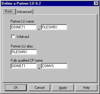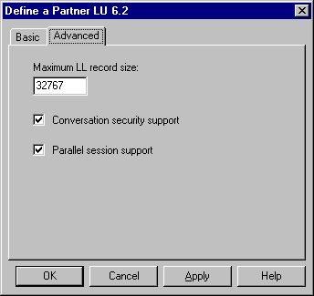 Select OK to complete the Partner LU configuration.