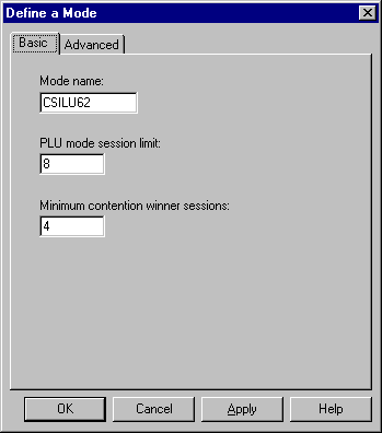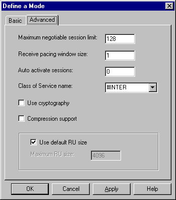 If the default mode #INTER is not appropriate (because its settings are incompatible with the modes defined on the host system for the Remote LU, or perhaps because a larger number of sessions is required) then a new mode can be defined.