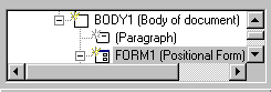 You can also insert a positional form anywhere on an HTML page by clicking the Positional Form button on the Form Elements component palette. Form Designer inserts the form at the current text cursor position. If you click above or below a positional form, you can add text or images to the page before or after the form.