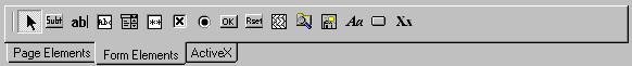 Enables you to add elements to your page or form. Elements are grouped onto different tabs. The Page Elements tab contains HTML elements which can be placed anywhere on a page. The Form Elements tab contains HTML elements which can only be placed inside an HTML form.
