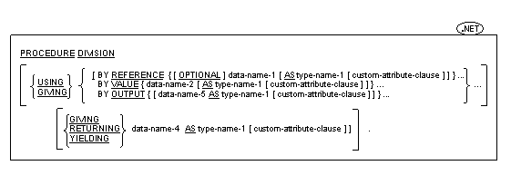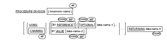 The Procedure Division is identified by and must begin with a header in one of the following formats: