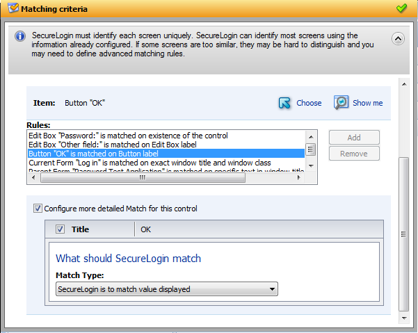 SecureLogin is to match value displayed: If you select this option, SecureLogin only matches those screens that exactly match the displayed text and rules identified.