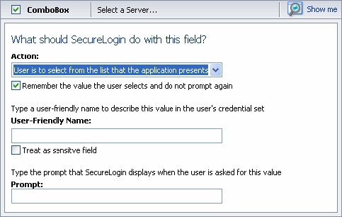 Use the value selected below for all users: If you select Use the value selected below for all users, specify the option SecureLogin selects. This is the only option available for combo boxes in Web applications.