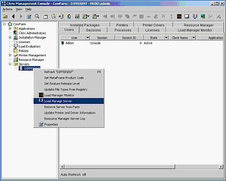 Right-click the relevant Citrix server name, then select Load Manage Server. The Load Manage Server - <server name> is displayed.