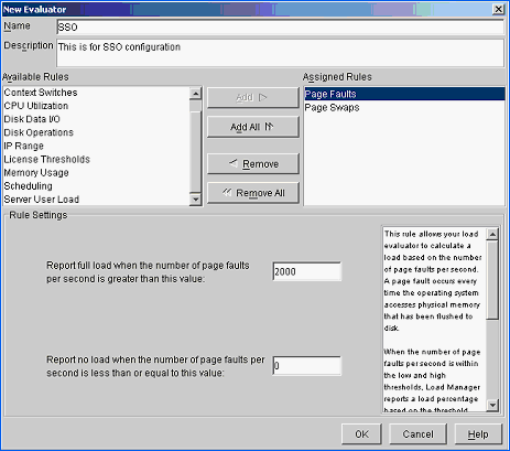 Specify a name for the Load Evaluator, and a description for the new evaluator.