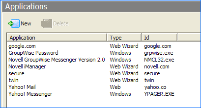 Figure 2-1 The Applications Pane in SecureLogin Manager