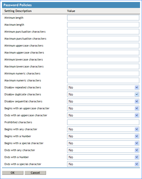 Organizations and applications often have rules about the content of passwords, including the required number and type of characters. The Password Policy properties table helps the users to create and enforce these password rules through a password policy, then apply this policy to one or more application logins.