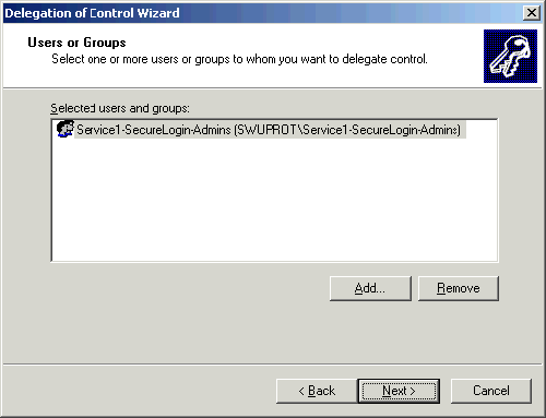You are now finished with the delegate control wizard for the Service1-SecureLogin-Admins group. Click Finish.