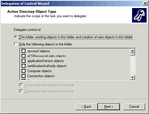 Select This folder, existing objects in this folder, and creation of new objects in this folder, then click Next.