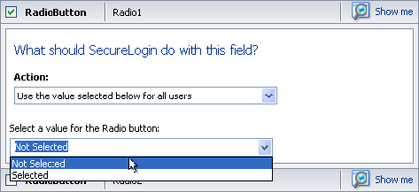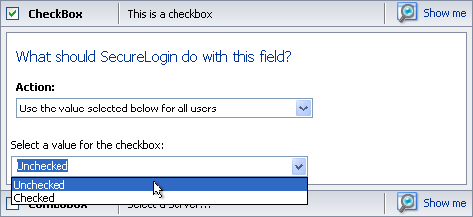 Use the value selected below for all users: If you select Use the value selected below for all users, specify the option SecureLogin selects. This is the only option available for combo boxes in Web applications.