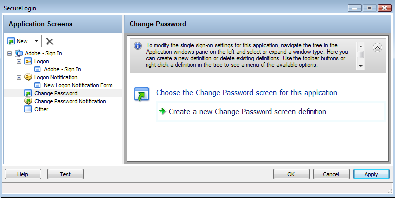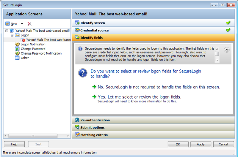 SecureLogin identifies the login screen of the application for which you want to enable single sign-on. You can use the Identify screen attribute to select or change the login screen of the application.