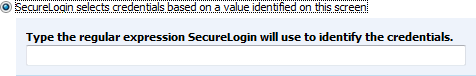SecureLogin selects credentials based on a value identified on this screen: Select this option when the login information for an application is determined by the presence of a particular value in the login screen. You can specify a text value in the field.