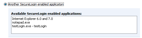 Another SecureLogin enabled application: Select this option to use the credentials of another application that is already enabled for single sign-on. Select a credential set from the list of applications displayed under Another SecureLogin enabled application.
