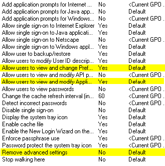 The preferences highlighted are the ones that are critical to ensure users are able to mange SecureLogin. Ensure that they are set as follows: