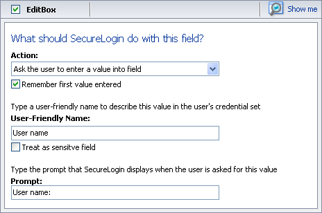 If an edit box is detected, use the Action list to configure SecureLogin to: