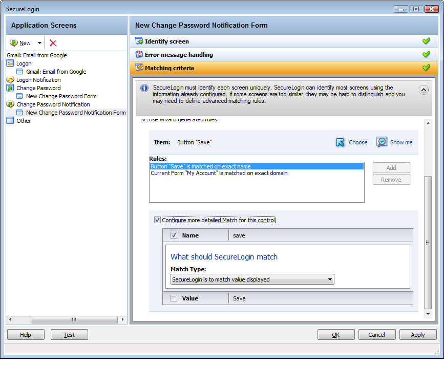 SecureLogin is to match value displayed: If you select this option, SecureLogin only matches those screens that exactly match the displayed text and rules identified.