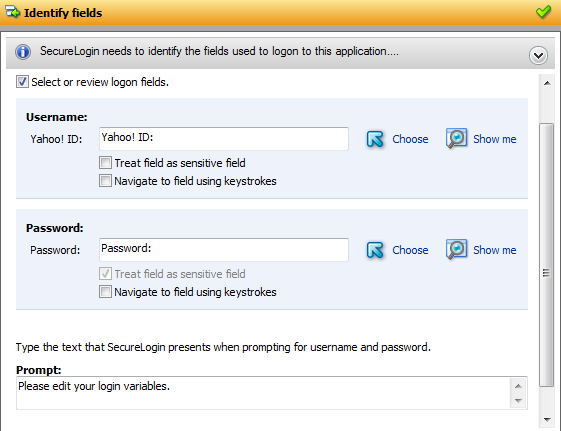 icon to a specific control and clicking Show me to confirm that SecureLogin has identified the correct control.