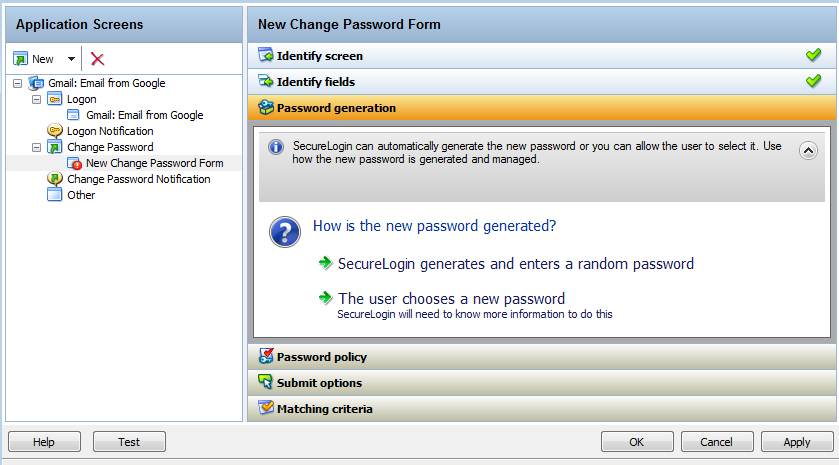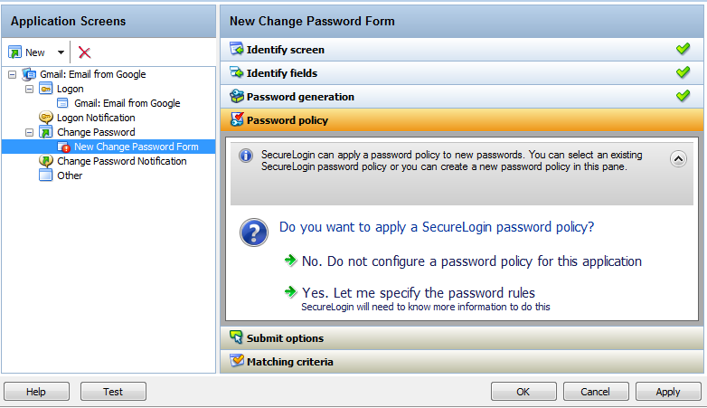 Use the Submit options menu to define how SecureLogin submits the change password screen.