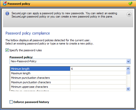Navigate to Password generation menu. Specify how you want to generate a new password: whether the user specifies the password or allow SecureLogin to generate a new password.
