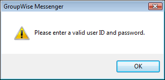 icon to the GroupWise Messenger dialog box displaying the error message.