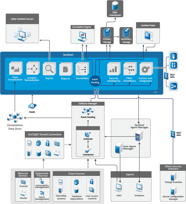 Provides the ability to hierarchically link multiple Sentinel systems, including Sentinel Log Manager.