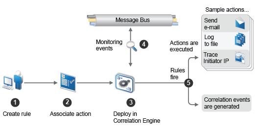 To monitor events according to the correlation rules, you must deploy the rules in the correlation engine. When an event occurs that satisfies the rule criteria, the correlation engine generates a correlation event describing the pattern.