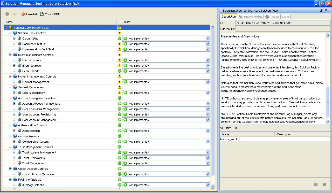 Installing a control and the child content for the control into the Sentinel system. When the content is initially installed, its status is Not Implemented.