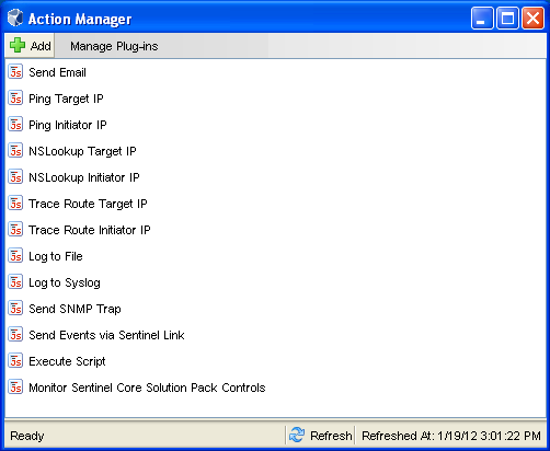 The Action Manager allows you to configure actions that can be executed in various contexts throughout the Sentinel system. You can also use the Action Manager to manage Actions and Action plug-ins