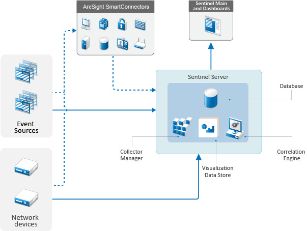 The most basic deployment option is an all-in-one system that contains all of the Sentinel components on a single computer. All-in-one deployment is suitable only if there is a small load on the system and you do not need to monitor Windows machines. In many environments, unpredictable and fluctuating loads, and resource conflicts between components can cause performance issues.