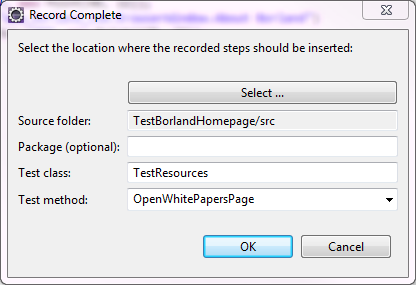 - Si aucune classe de test Silk4J n'est ouverte dans Eclipse, les actions enregistrées aboutissent dans un nouveau fichier de classe de test Silk4J.