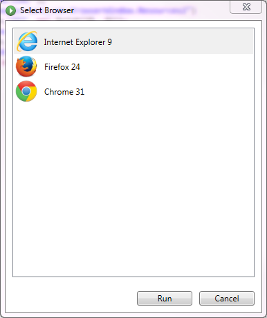 - Dans la boîte de dialogue Sélectionner le navigateur, choisissez le navigateur pour exécuter le test.