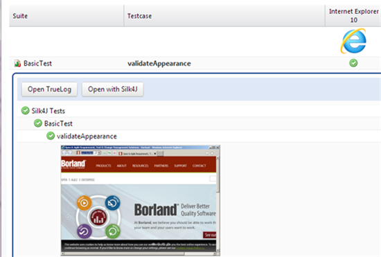 页面上,单击测试的状态以查看详细信息,包括错误日志和 TrueLog 文件。