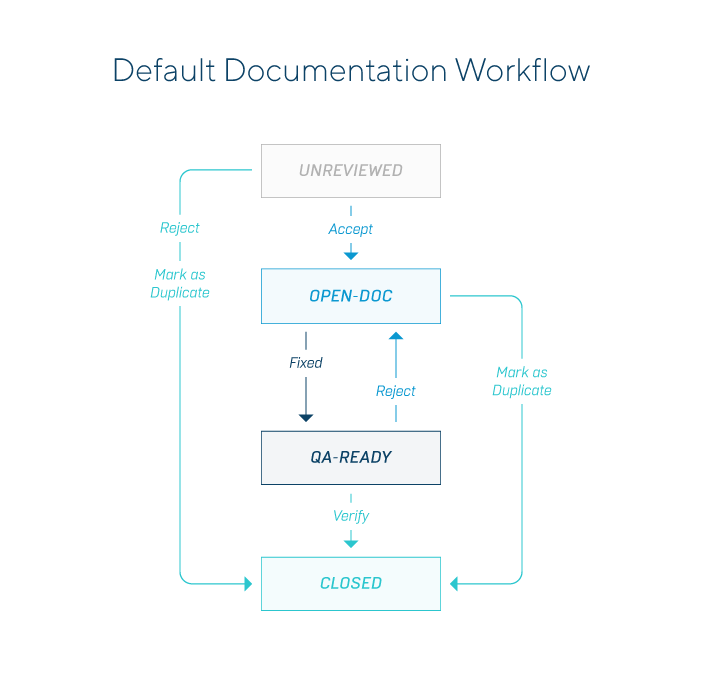 Le schéma suivant illustre le workflow de documentation par défaut :