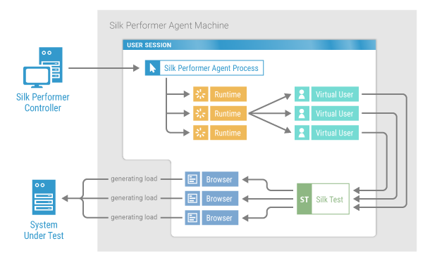 When you start a test, the Silk Performer Controller connects to an agent running on a Microsoft Windows Server operating system and has Remote Desktop Service (formerly known as Terminal Services) running. Silk Test then performs the previously recorded steps on the application, or in other words: Silk Test drives the application.