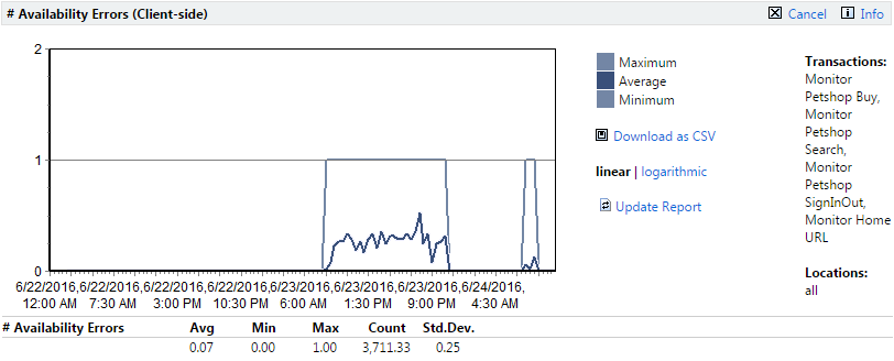To see detailed analysis of the number of availability errors over time, click # Availability Errors. This takes you to the availability Details chart.
