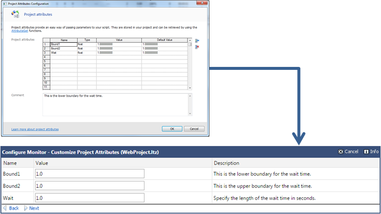 Silk Performer project attributes act as customizable variables.
