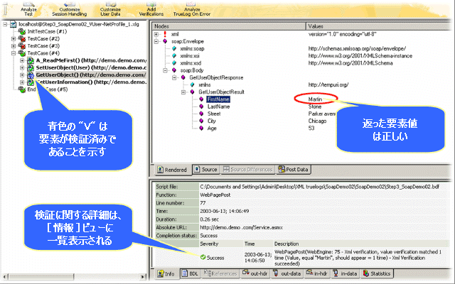 注: 解析/検証関数をテスト スクリプトに挿入する順番は関係ありません。